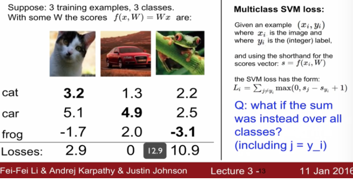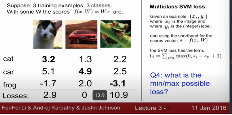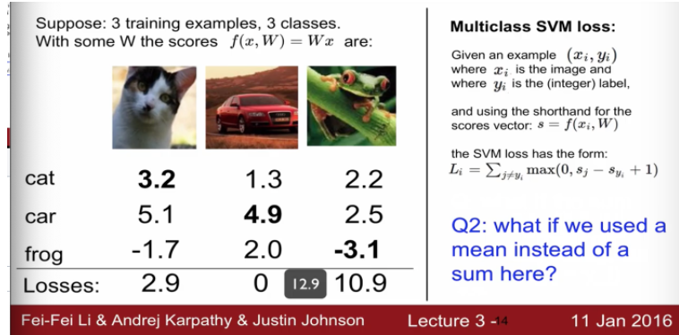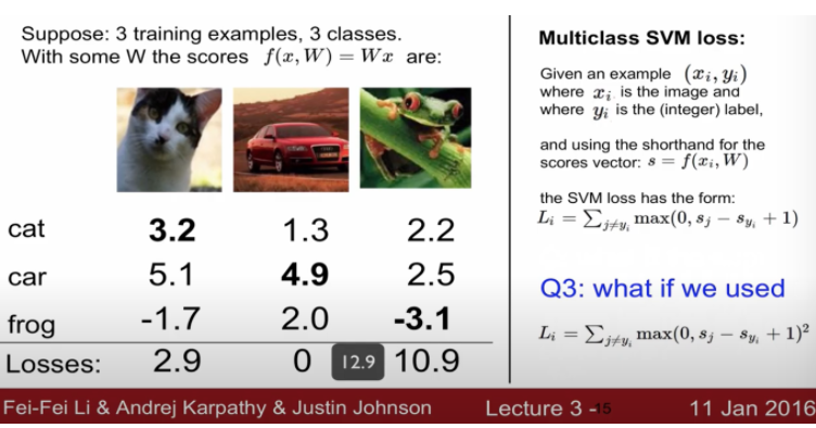 SVM같은 경우는 뒤에 1과같은 Safety Margin때문에 사실상 loss값이 변하기 힘들고, softmax는 모든 인자를 고려하기 때문에 조금 더 variable하다.