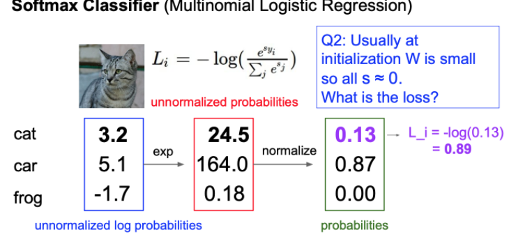 - Unnormalized probabilities: 확률로 나타낸 것.(2의 3.2성, 2의 5.1성, 2의 -1.7성)