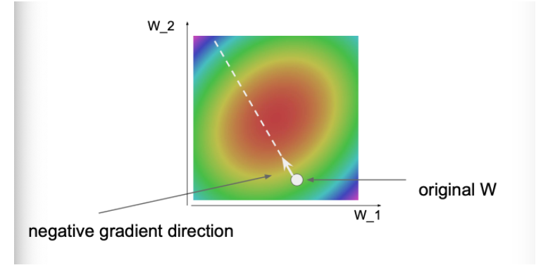 - Original W가 어느 지점에 위치하고 있을 때, negative gradient 방향으로 이동하며 최적화해나가는게 바로